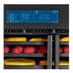 Vill du utvinna så många enzymer och bevara så många näringsämnen som möjligt? Detta är precis vad som händer om du torkar mat och frukt. Denna torkugn från Excalibur har 10 brickor, ger en jämn torkning på alla plan tack vare sitt aggregat i bakkanten och de smarta transparenta dörrarna i polykarbonatplast gör att du kan kontrollera maten utan att behöva ta ut den. Den är utrustad med en 99-timmars digital timerkontroll. Med hjälp av den kan du ställa in torktid och du kan i förväg även ställa in olika temperaturer (mellan 29.4°C – 73.9°C) i olika tidsspann under torkningstiden för att snabba på processen samtidigt som du behåller kvalitén på maten. Utöver det har den här torkugnen 2 olika zoner som gör att multipla program/temperaturer kan köras samtidigt! Spara upp till 30 recept/program och torka din mat enkelt, effektivt och professionellt.