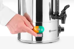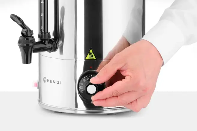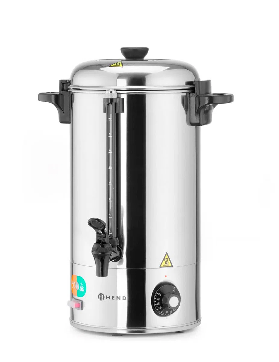 Vattenkokare från Hendi med kapacitet på 9 liter. Single walled och gjord i rostfritt stål. 230 V. Max temperatur – 94 – 99 C grader. Mått: 336x221x(h)474 mm