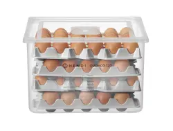 Avsedd för säker förvaring av steriliserade ägg i kylrum – utan risk för att salmonella överförs till äggen eller in i kylrummet igen.