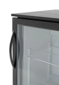 Powder coated housing, embossed aluminium chamber, plastic lockable door(s) with toughened glass. Forced air cooling with auto-defrost, compressor placed underneath the chamber. Chamber fitted with LED lighting. Digital display and temperature control. Fitted with 4 adjustable non-slip feet. Refrigerant: R600a.