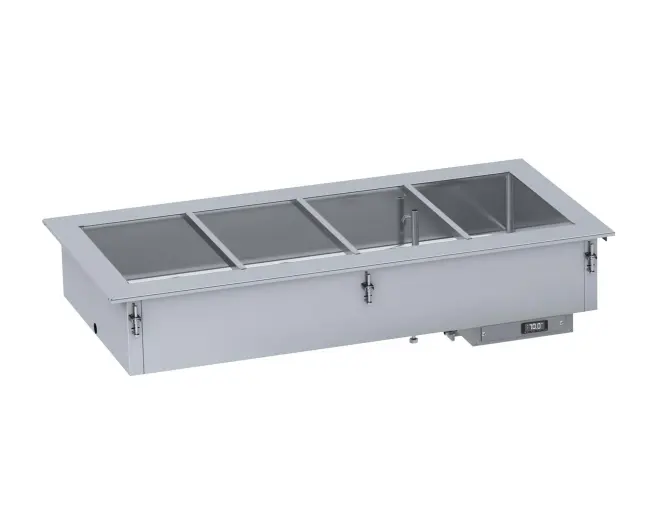Bain marie-värmesystem med dolda silikonresistorer som är fästa på botten av brunnen.