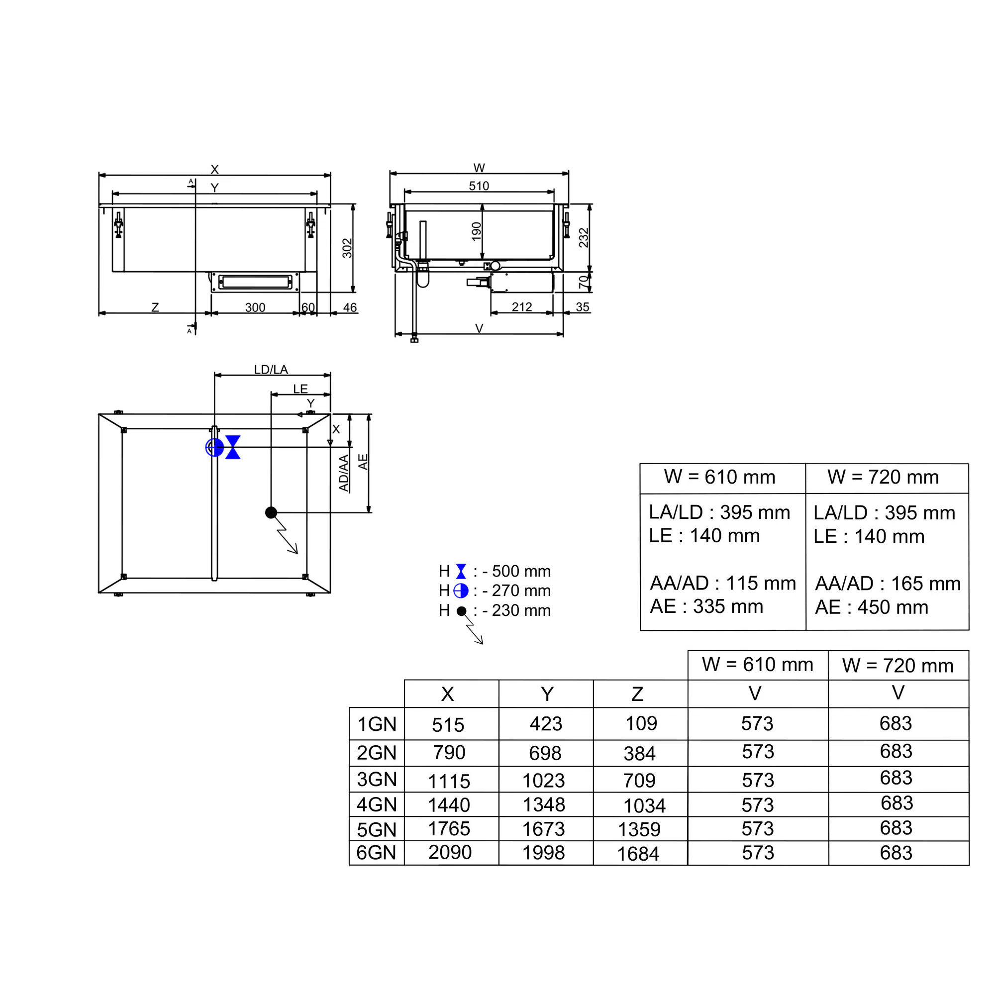 Vattenbad bain marie. Bredd 610 mm 4 GN 1/1 kapacitet. Påfyllning kran.