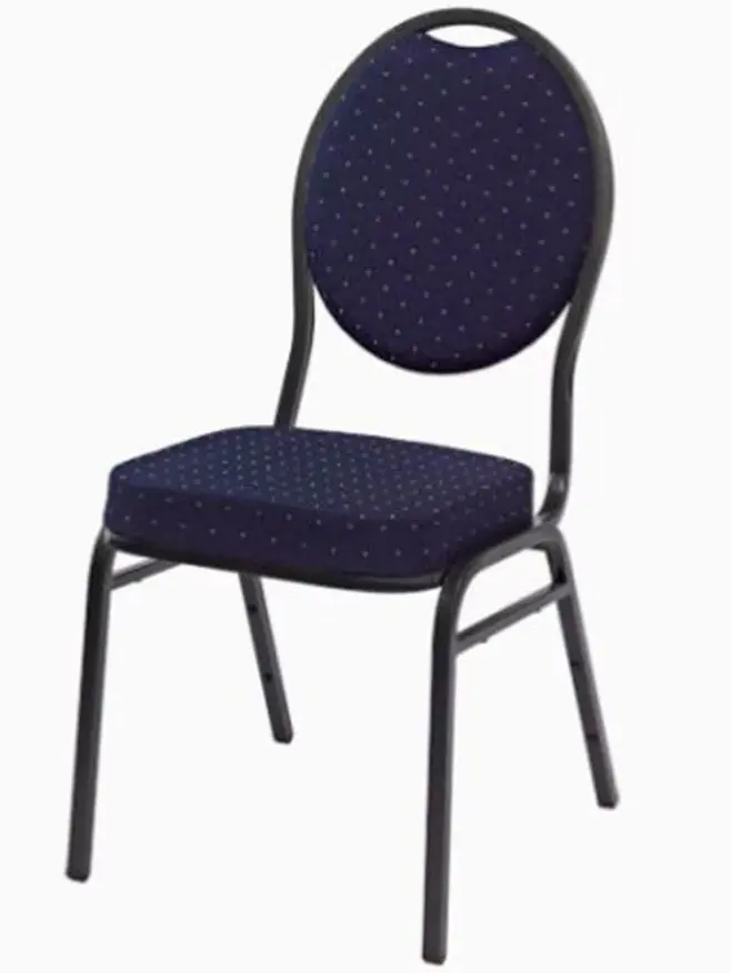 Här är vår mest ekonomiska och klassiska bankettstol i stål och blått tyg. Det ekonomiska valet. En stark stol i fyra färger. Stapelbar.
