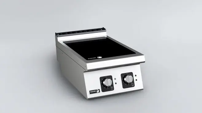 Induktionsspis i bänkmodell från Fagors Kore 700 serie lagar mat snabbt och effektivt. Induktionspisen har 2 högeffektiva kokzoner och snabb uppvärmning som medför till en effektiv matlagning och är därmed energisparande.