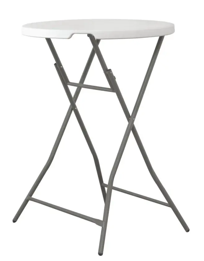 Easy to store and transport foldable furniture for outdoor and indoor use. Ideal for fairs, events, catering, rental, etc. Table top made of HDPE polyethylene, frame made of powder coated metal. Easy to clean and dirt-resistant.