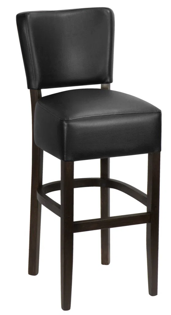 Barstolen här har en sitthöjd på 80 cm. Den har fotstöd runt om. Samtidigt är den gjord av det mycket starka bokträet med en fin wengéfärg.