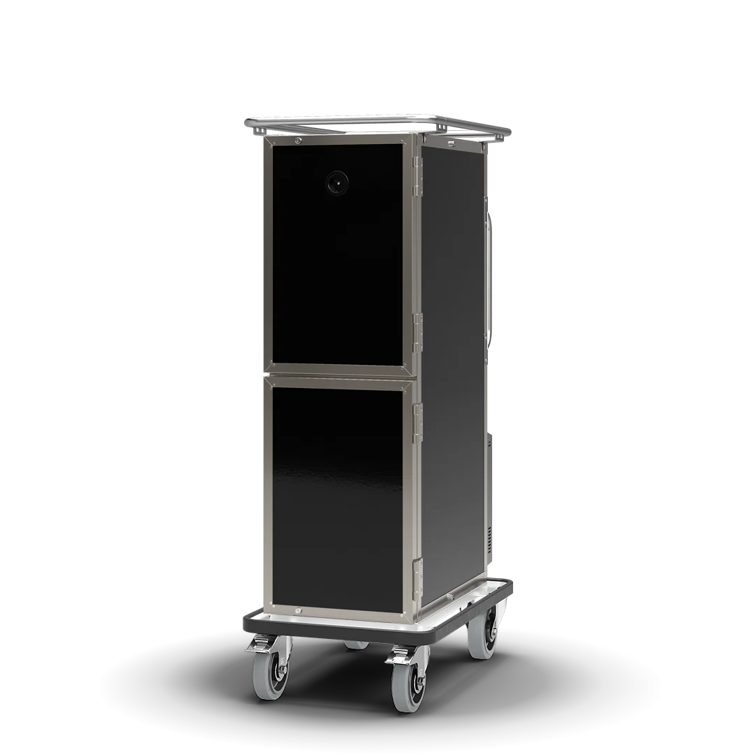 Boxen är utrustad med kompressorkyla och fläktvärmesystem säkert placerade på boxens baksida tillsammans med strömkontakten. Kompressorkylsystemet är speciellt utformat för att hålla låg ljudnivå, vara lättillgängligt för service och klara utmaningarna med extern transport på lastbilar etc. Nedkylningstid ca. 35 minuter. Fläktvärmesystemet genererar exakt temperatur och jämn värme i hela utrymmet. Uppvärmningstid ca. 20 minuter. Kontrollera matkvalitén genom att ställa in temperaturen i facken med hjälp utav de två enklare justerbara regulatorerna placerade på baksidan av boxen och fukten genom den justerbara ventilen på dörren. Boxen är byggd enligt samma robusta och lätthanterliga design som våra andra produkter. Ett begränsat utbud av tillval och tillbehör finns tillgängliga.