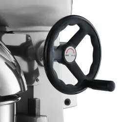 Maskinen väger 150 kg, vilket gör att den står stabilt även när den arbetar med större degsatser. Höljet i gjutjärn med reptålig yta är anpassat för intensiv användning i restaurangkök.
