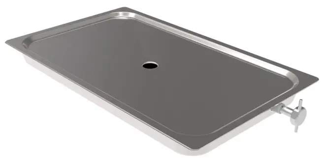 Bleck för fettuppsamling med tömningsventil, 100 mm djup