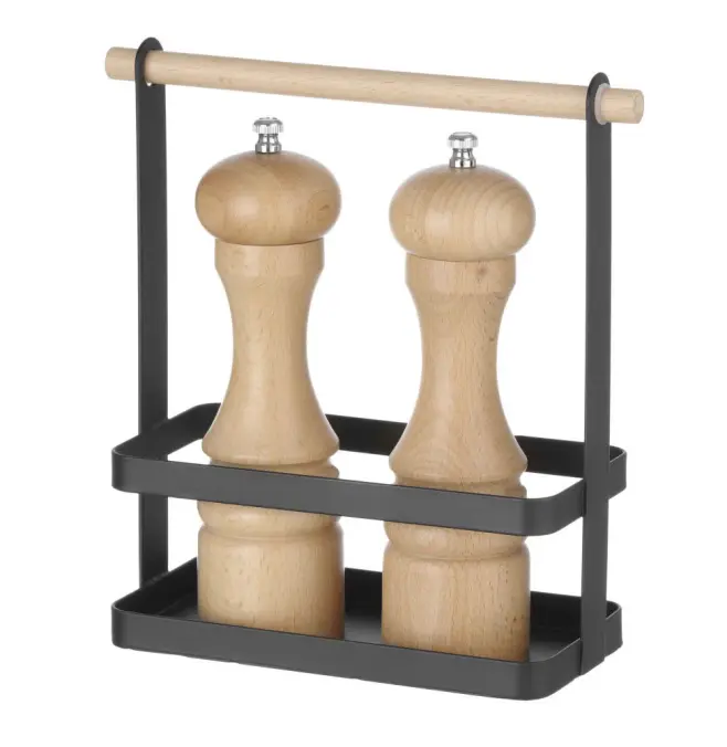Fitted with a wooden handle. Finished with a matt black powder coating.