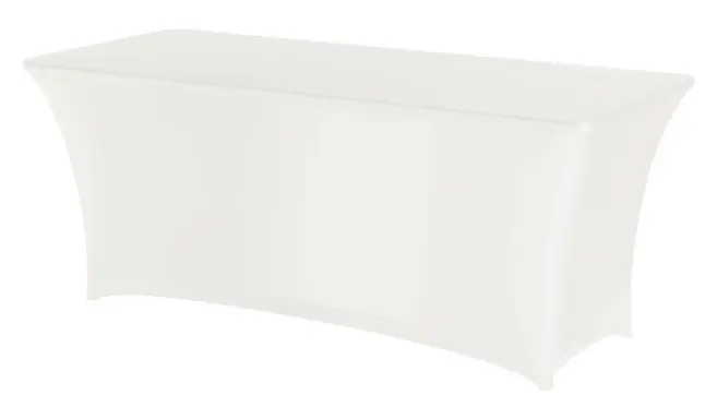 Fabric: Plain Jersey 160 g/m². 90% micro polyester / 10% elastan. No ironing needed. Fits rectangular buffet tables.