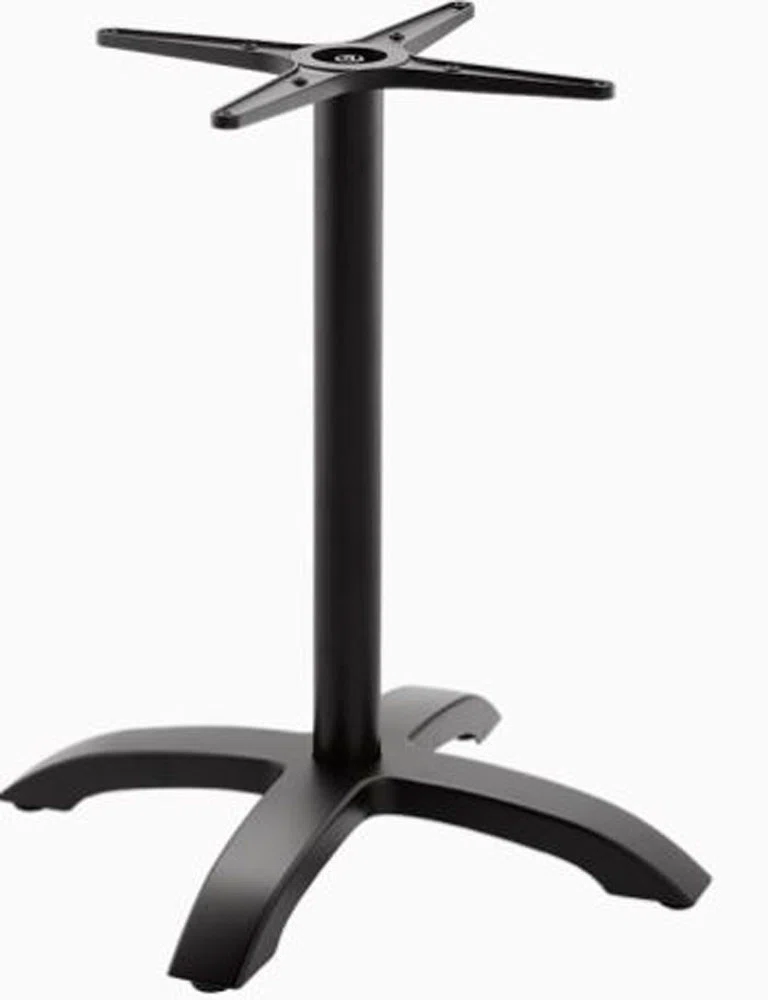 Bordsstativ i svart med 4 fot, som är stabil. Basen har justerskruvar under varje ben, så stommen kan stå helt platt. Tillverkad i aluminium med svart pulverlack. Klarar ett bord topp av max 80×80 cm / Ø 80 cm