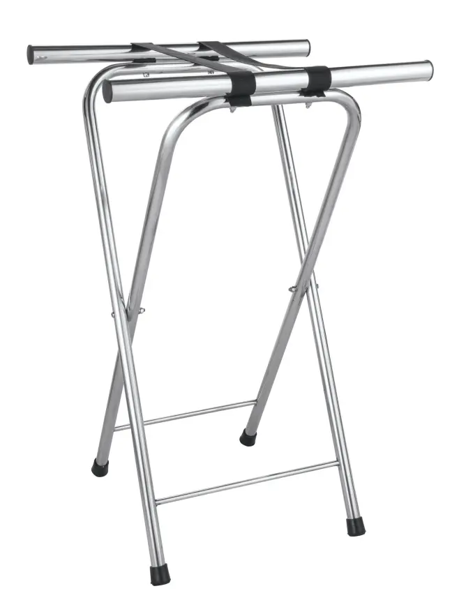 Högkvalitativt brickställ i robust konstruktion. Utrustad med svarta bälten och mycket lätt att ställa upp. Rostfritt stål.