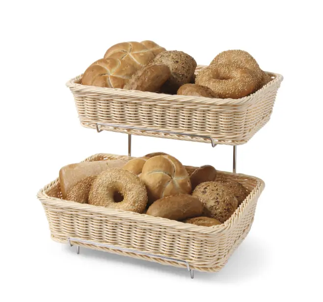 Brödkorgshållare i två våningar. Hållaren är kromad. Två korgar ingår, 360x280xH90/315. Tål maskindisk.