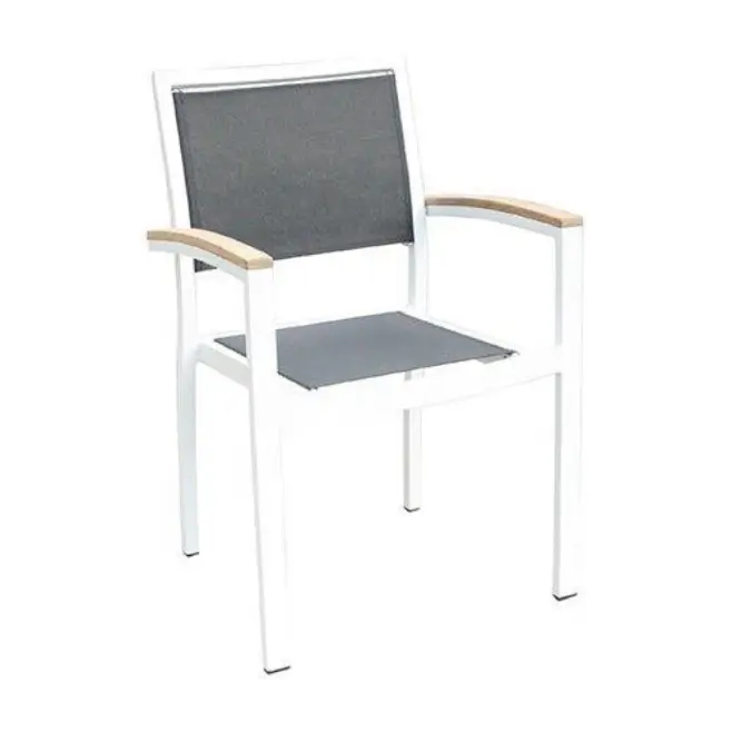Stolen är tillverkad av UV-beständiga textilier och kan staplas 24 st i en stapel.