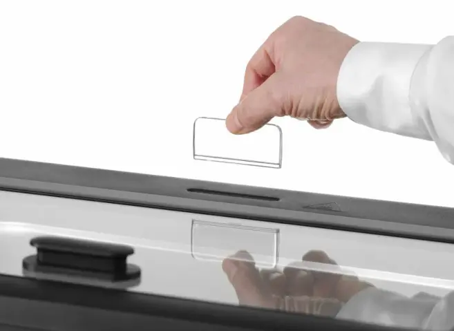Den inbyggda korthållaren på locket gör det enkelt att visa rättens namn på buffén, och den robusta konstruktionen i högtemperaturbeständig polypropen och rostfritt stål gör modellen både lätt, hållbar och enkel att rengöra.