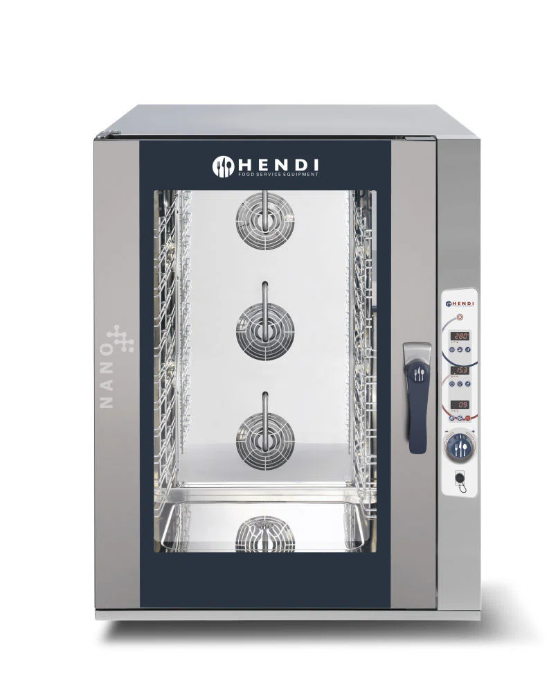 A convection steam oven combines the efficiency of a convection oven with the capabilities of a steam oven. These modes can be used separately or in conjunction with one another. These ovens are the way to go when you want to create scrumptious baked goods, vegetables with a bite, flavorful roasted meat and poultry or perfectly steamed fish. Steam is generated by directly spraying water on the heaters. The steam levels in the chamber are controllable and the oven has multiple automated features to maintain the set levels. Works with a direct water connection: ¾”, max 30°C, 150-200 kPa (2 bar), only treated, softened water. Housing and chamber are made of high-quality stainless steel, the chamber is equipped with a drain in the bottom. The powerful 6 bladed fan(s) have auto-reverse and can spin at two speeds (1400/2800 rpm), this results in ideal distribution of air in chamber and preventing inner turbulence. The fan motor has double bearings and 250W of power. The digital control panel has clear readouts for the different functions, time, temperature and cooking program. Electronic timer can be set up to 999 minutes, temperature up to 260˚C. The oven is programmable to ensures the same level of quality in day to day operations. Its possible to create 99 3-step programs, 4 if pre-heating is also added to the program. The oven is fitted with a removable temperature probe which can work in conjunction with the incorporated Delta-T cooking function. Keeps the chamber warm before pre-heating to ensure quick ready times. The door is fitted with two layers of glass with space for gravity ventilation, this keeps the outside glass cool to the touch. Outside glass can be removed to ease cleaning. Door gasket is fitted in the chamber and removable to ease cleaning and replacement. The chamber is fitted removable GN-tray guides and halogen lighting. Automatic chamber heating before PRE-HEATING” cycle.