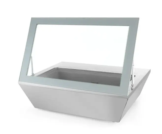 Body made of high-quality stainless steel, fitted with triple glazed cover with easy opening system. Forced air cooling with auto-defrost, compressor placed next to the chamber. Fits 8x GN 1/6 GN containers or 4x GN 1/3 containers (max. height 150 mm). With 4 adjustable stainless steel feet. Digital temperature controller and display. Refrigerant: R600a. Climate class: 4