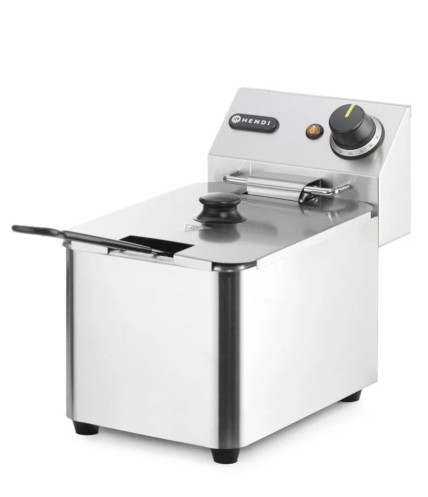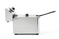 Fritös 4L med hölje och oljetank av rostfritt stål. Avtagbart element med avstängningsfunktion när det tas bort.