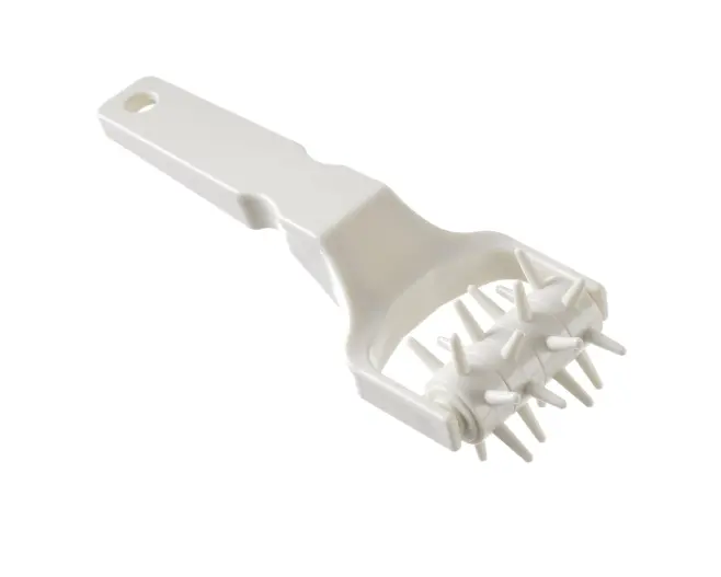 60 mm bred rulle med 32 långa plastpiggar för hantering av tjocka degar. Kan användas på deg för att undvika stora luftbubblor.