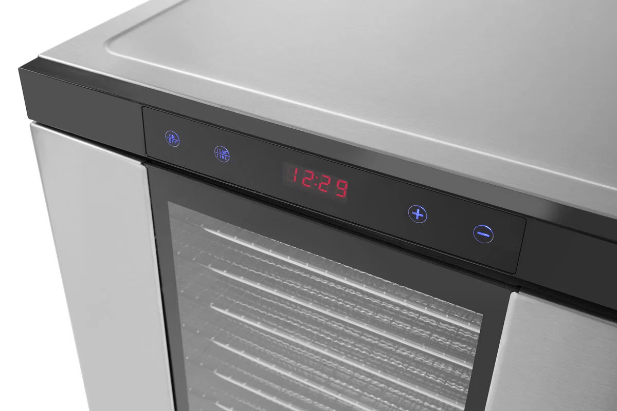 Dehydrator i rostfritt utförande med 10 plåtar och digital kontroll