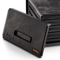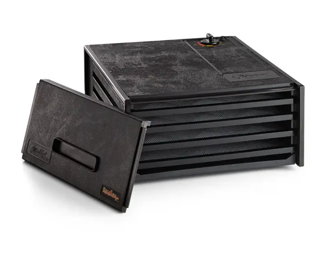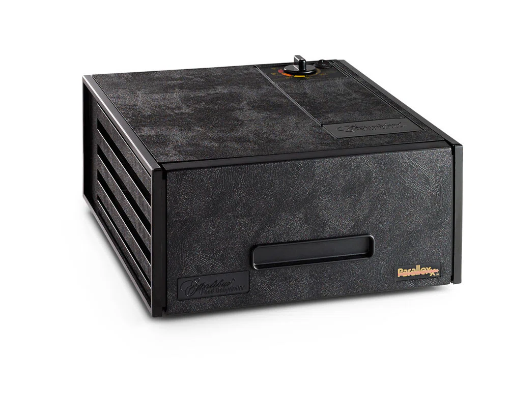 Dehydratorn med 4 brickor från Excalibur är en professionell och lättanvänd torkugn som ger en jämn torkning på alla plan tack vare sitt aggregat i bakkanten. Fläkten mäter 10 cm i diameter. De fyra brickorna är utdragbara och dörren är avtagbar. Detta underlättar när du vill kontrollera torkningen. Torktemperaturen kan gå så lågt som 40C i denna torkugn och upp till 75C om så behövs.