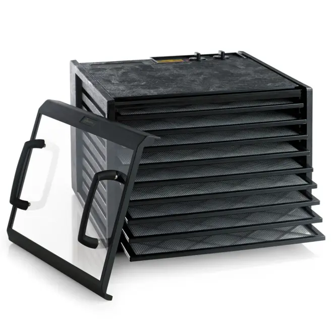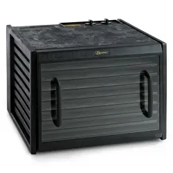 Dehydratorn är professionell och lättanvänd med ett torkutrymme på 1,4 m2. Torkugnen ger en jämn torkning på alla plan tack vare sitt aggregat i bakkanten. Fläkten mäter 17,8 cm i diameter. Denna dehydrator har en ställbar timer på upp till 26 h och en justerbar termostat 40-75C.