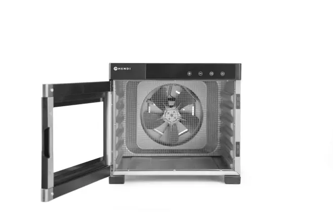 Dehydrator med 6 st galler. För torkning av kött, grönsaker, frukt, örter, fisk m.m. Timer justerbar från 24 timmar – 30 min. Temperaturjusterbar från 35 C till 75 C grader med 5 C graders steg. Ger ett jämnt resultat tack vare fläkten utan att man behöver rotera gallret. Lätt att rengöra. Genomskinlig dörr så du kan ha koll på torkningen.