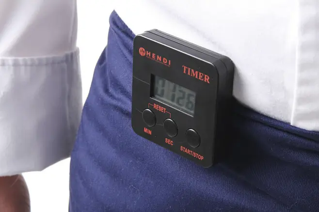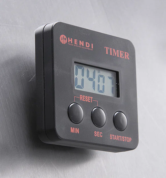 Digital köktimer med magnetiskt clip med tidtagning upp till 99min 59s. Batteri ingår.