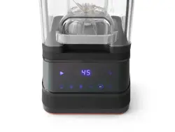Denna mixer kan förbereda vad som helst: frukt, grönsaker, cocktails, smoothies, desserter och till och med krossad is. Utbytbara blad i rostfritt stål med titanbeläggning. Digital kontrollpanel har touchkontroll för tre effektinställningar, tre tidsinställningar och en pulsfunktion. Bullerskydd av polykarbonat, för säkerhets skull fungerar mixern endast när locket är helt stängt. Levereras med 2,5L brottsäker BPA-fri Tritan-kanna, fast lock av polypropen och ett litet BPA-fritt Tritan-lock. Löstagbar kanna tål temperaturer på -40ËšC upp till 90ËšC. Höghastighetsmotor med variabel hastighet och pulsfunktion driver bladen från 8350 RPM upp till 24800 RPM (utan belastning). Utrustad med överhettnings- och överströmsskydd.