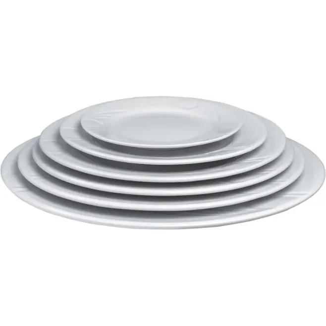 Vit hotellporslin Förstärkta kanter, högkvalitativ glasering Hög slag- och slitstyrka 10 års leveransgaranti