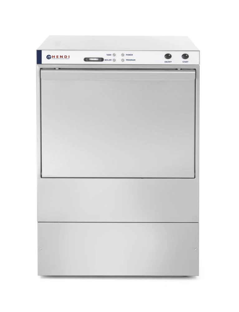 Suitable for baskets of 500×500 mm, max glass height 325 mm, max plate height 335 mm. Fitted with multiple sprayers and spray arms. Separate rotating spray arms for washing (plastic) and rinsing (stainless steel), and fixed upper sprayers for washing. Fitted with solid double skinned door with two hinges, needs 370mm of space to open completely. Boiler capacity of 6 liter (6kW), tank capacity of 35 liter (6kW) Powerful water pump (0,75HP) with IP44 protection class With thermometer for reading the boiler temperature. Weight 57 kg Accessories supplied with the dishwasher – basket for glasses (500x500x(H)105 mm) – basket for plates (500x500x(H)105 mm) – cutlery basket (110x110x(H)130 mm) – water hose with 3″ inner thread connection (150cm) – drain hose Ø25mm (200cm) – power cord without plug – rinse aid dispenser