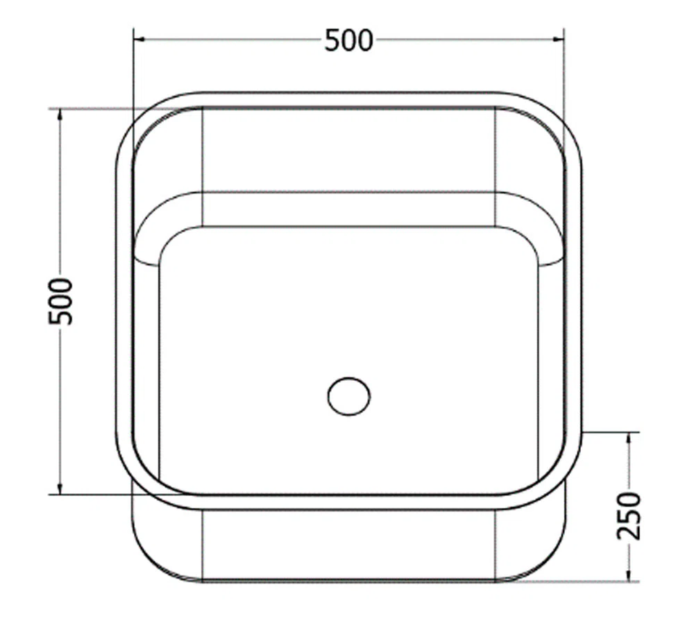 Insvetsad diskho 500x500x250mm – tillval till rostfria bänkar från Dayton.
