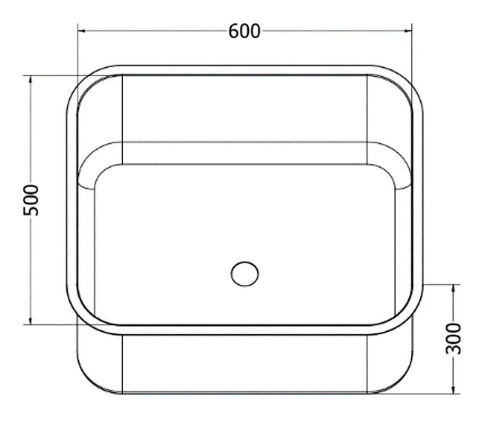 Insvetsad diskho 600x500x300mm – tillval till rostfria bänkar från Dayton.