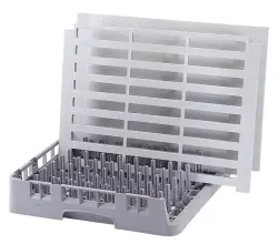 Camrack Tray Rack är en robust och hygienisk diskkorg för brickor som rymmer upp till nio cafeteriabrickor eller bleck. Den tål upp till 93,3 °C och är tillverkad i kemikalieresistent, diskmaskinssäkert plast — perfekt för skolor, kaféer, hotell och restauranger som vill effektivisera disk- och serveringsflödet.