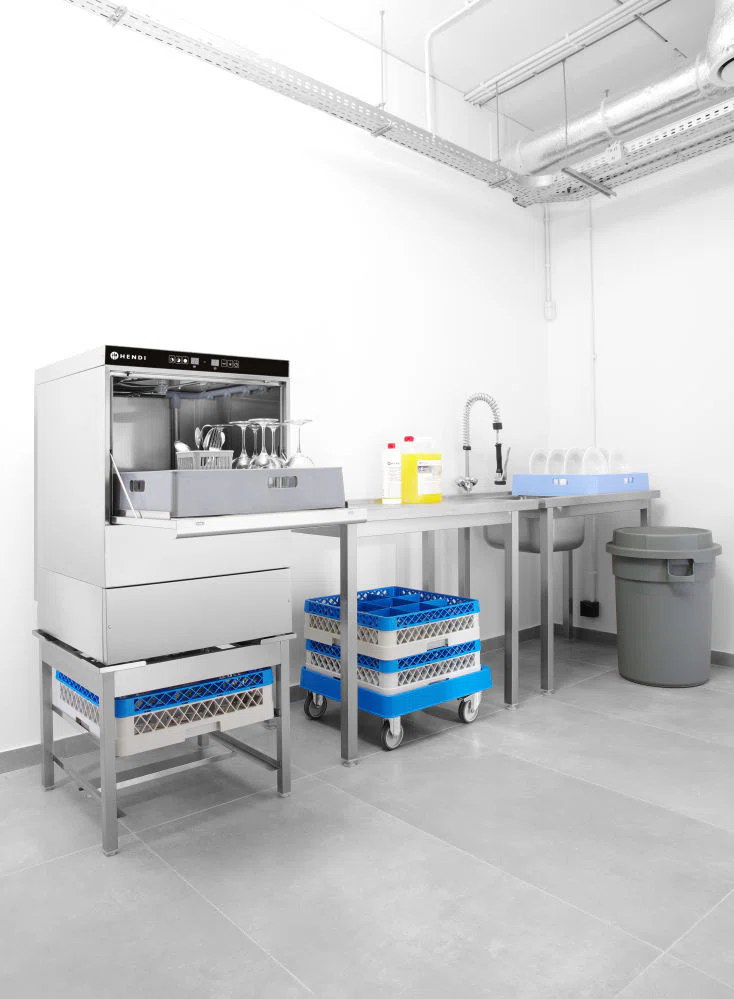 Extremt lätt att använda, rengöra och serva. Idealisk för rengöring av tallrikar, bestick, glas, koppar, brickor. Elektroniska kontroller. Disk- och sköljmedelsdoserare samt pump standard ingår. Hus av rostfritt stål AISI 304. Roterande plasttvätt och rostfria sköljarmar i botten av kammaren. Stationära tvättarmar av plast och roterande sköljarmar i rostfritt stål i toppen av kammaren. Robust dubbelhudsdörr försedd med mikrobrytare, stoppar programmet när den öppnas. Maxhöjd på glasögon: 325 mm. Maxhöjd plåtar: 335 mm. Vattentemperatur under tvätt: 60°C. Vattentemperatur under sköljning: 85°C. Panna (kapacitet/effekt): 6L / 6 kW Bad (kapacitet/effekt): 35L / 2,8 kW. Tvättpump: 0,75 km. Säkerhetstermostat för panna/badkar: upp till 105°C / 99°C. Elektronisk vattentermometer för panna och tank. Pumpens tätningsfaktor: IP 44 ø40 mm fot, ±10 mm i höjdjusterbar Vikt: 55 kg. FUNKTIONER: Tre tvättprogram: 60, 120, 180 s. (Tvättprogrammet förlängs automatiskt med den tid som behövs för att värma upp sköljvattnet till +85°C) Rengöringsprogram för diskmaskin. Kallsköljfunktion – idealisk för glastvätt. THERMO-PROTECTOR-system för att förhindra kallvattenspolning – garanterar att sköljningen inte startar förrän temperaturen är 85°C. SOFT START-systemet startar vattenpumpen vid ett lågt tryck och ökar gradvis trycket för att skydda ömtåliga föremål. 8-punkts självdiagnostiseringssystem. ECO-system – för minskad strömförbrukning. FÖRDELAR MED KALLSKÖLJNING: Kylar ner glasen efter rengöring, vilket gör dem redo för användning omedelbart. Tar bort lukten av sköljmedel, perfekt för vinglas. UTRUSTNING: 1 universal glaskorg 500x500x(H)105 mm. 1 korg med stift för djupa och grunda tallrikar med 5×8 st, 500x500x(H)105 mm. 1 bestickkorg 110x110x(H)130 mm. Dispenser för elektriskt diskmedel och spolglans. Vattenslang 1,5 m lång, med 3/4 invändig gänganslutning. Avloppspump och avloppsslang. Nätsladd utan kontakt.