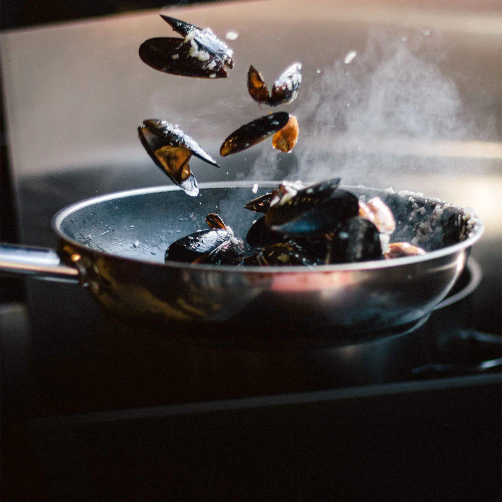 Mycket stilren design som lämpar sig för showcooking. Mycket platt hölje med svartlackerad ram i rostfritt stål. Yta av keramiskt glas med integrerad digital display.