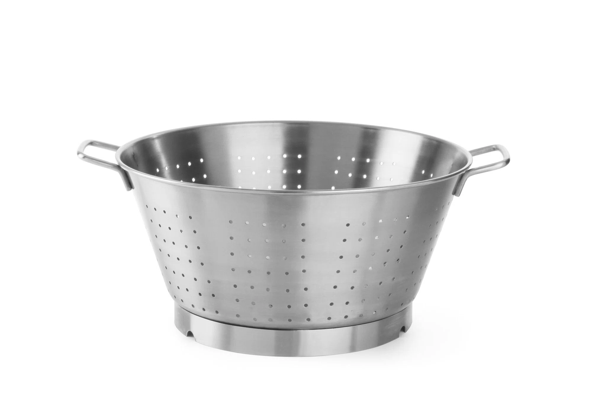 Rejält durkslag i rostfritt stål från Profi Line-serien med nitade hantag. Tål maskindisk.