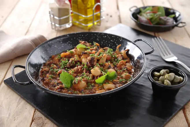 Med 2 handtag. Emaljerad stålplåt. Kan diskas i diskmaskin. Passar alla värmekällor utom induktion.