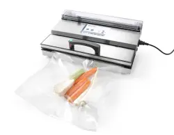 2-ply, inside layer 60 µm food contact approved Polyethylene, outside layer 15µm Polyamide (Nylon). Total thickness is 75 µm. The used materials act as an UV filter. Embossing improves the air flow out of the bag during the vacuum packing process. Bags can be used in temperatures from -20˚ up to 100˚C. Suitable for chamber and external vacuum packing machines.