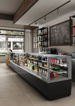 Exponeringskyl från ISA med ventilerad kylning och automatisk avfrostning. Perfekt för färska produkter, bakverk och drycker.