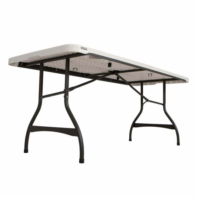 Detta Lifetime fällbord kombinerar styrka, funktion och smart design. Om du behöver ett robust, lättförflyttat och platsbesparande bord för återkommande evenemang är det ett kostnadseffektivt val som håller länge.