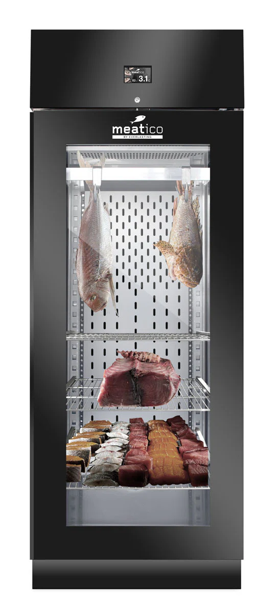 Meatico FISH är det idealiska verktyget för att på ett säkert och professionellt sätt ägna sig åt mörning eller dry-aging av fisk. Med hjälp av experter från restaurangbranschen och yrkesmän som länge har jobbat med dry-aging av fisk, tillsammans med Meaticos beprövade erfarenhet av professionell kylning, har man kunnat skapa en pålitlig och  professionell produkt. Med flera förinställda recept har du ett skåp för hängmörning av fisk till ditt förfogande som skapar möjligheter du tidigare inte trodde var möjliga i ditt kök.