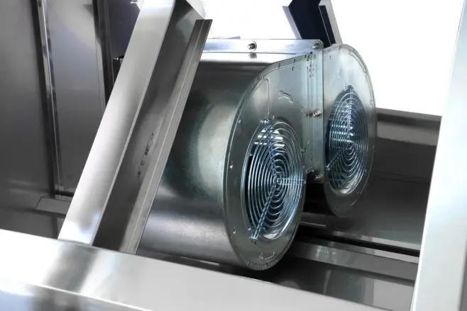 P-CARBO-fläktarna tillhör ECO-serien och har förutom etförsta rostfri nätfilter också en extra filterdel som består av ett syntetiskt filter av G3-klass och ett filter innehållande aktivt kol av typen ”CARBOFIL ACG”.