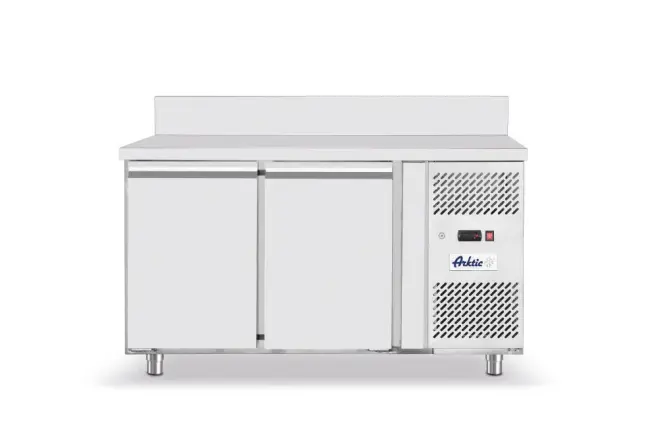 Inner and outer housing are made of high-quality stainless steel, except the outer rear cover which is made of galvanized steel. Self-closing doors fitted with comfortable handles. Work surface fitted with a 40 mm high ridge at the back. Forced air cooling with auto-defrost, compressor placed next to the chamber. 50 mm thick polyurethane foam insulation. With adjustable shelving, fits containers up to GN 1/1. Digital display and electronic thermostat. With 4 adjustable stainless-steel feet. Climate class: SN-T.