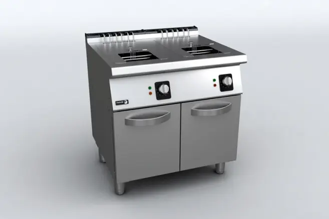Högpresterande fritös anpassad för restaurang och storkök för produktion av stora mängder friterad mat tillverkad av Fagor Kore 700. En fritös som uppnår perfekt förbränning.
