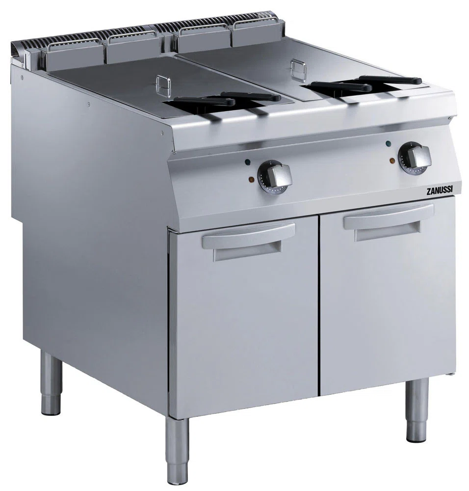 Fritös. El. Golvmodell. 800mm. 2 bassänger (18+18L). Synliga element.