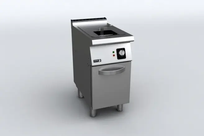 Högpresterande fritös i gas, anpassad för restaurang och storkök för produktion av stora mängder friterad mat. En fritös med 1 korg och 15 liters utrymme som uppnår perfekt förbränning.