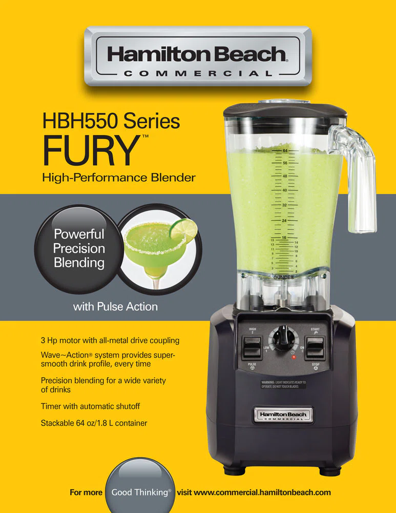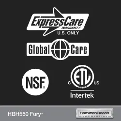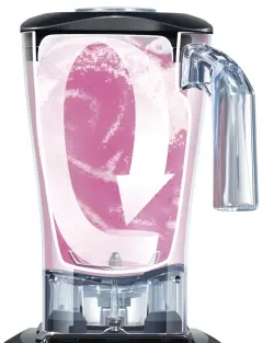 Patenterat Wave~Action®-system med kraftull 3 peak Hp motor. 2 hastigheter. Behållare 1,8 liter i polyrcarbonat.