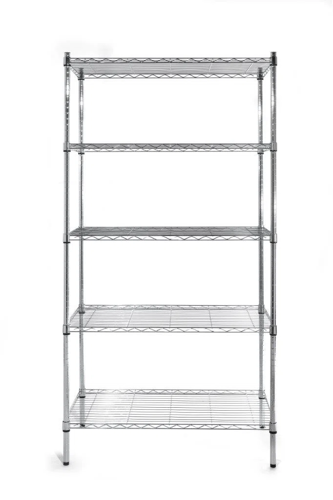 Stark och stabil hylla i kromstål